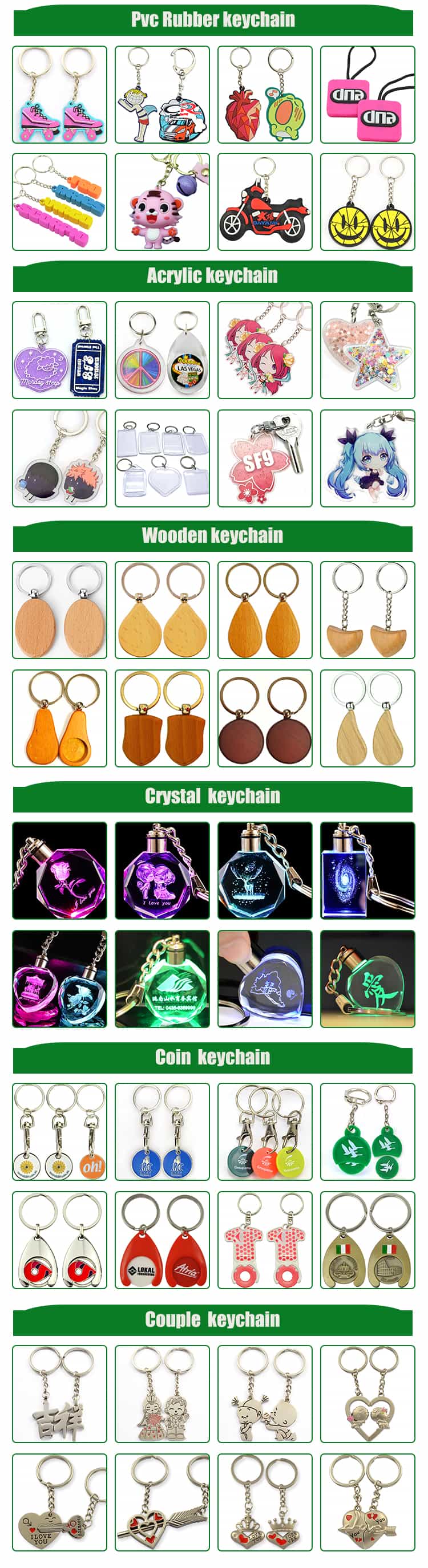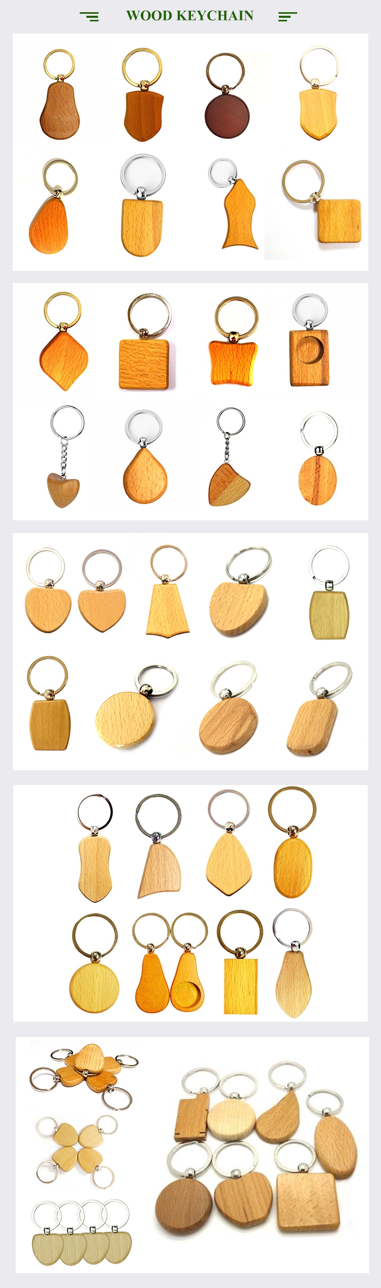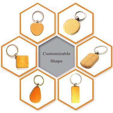 حلقههای کلید چوبی نه تنها میتوانند در اشکال مختلف سفارشی شوند، بلکه میتوانند به صورت الگوها و کلمات مختلف نیز حکاکی شوند. استفاده عمومی از انواع چوبهای حکاکی شده به نوعی الگو است، برخی نیز بر روی متن دعا حکاکی میشوند. نوعی که مواد را تضمین میکند رایجتر است: چوب رز، عناب، آبنوس و غیره. در میان آنها، چوب عناب در تائوئیسم دارای اثر جنگیری محسوب میشود، بنابراین بیشتر مورد استفاده قرار میگیرد. (اگرچه چوب هلو نیز برای دفع ارواح شیطانی استفاده میشود، اما نسبتاً نرم است، بنابراین به ندرت به عنوان حلقه کلید استفاده میشود.)