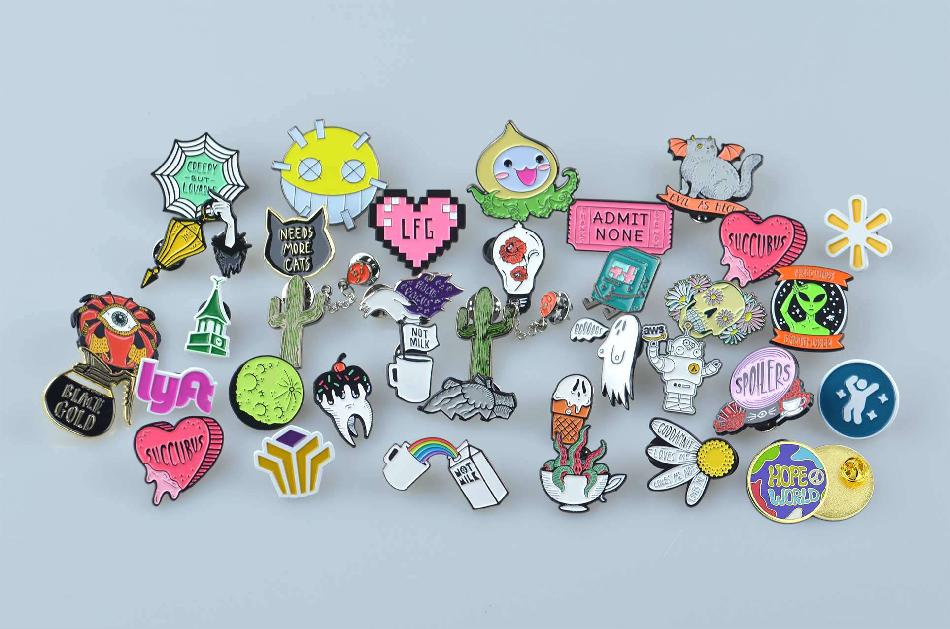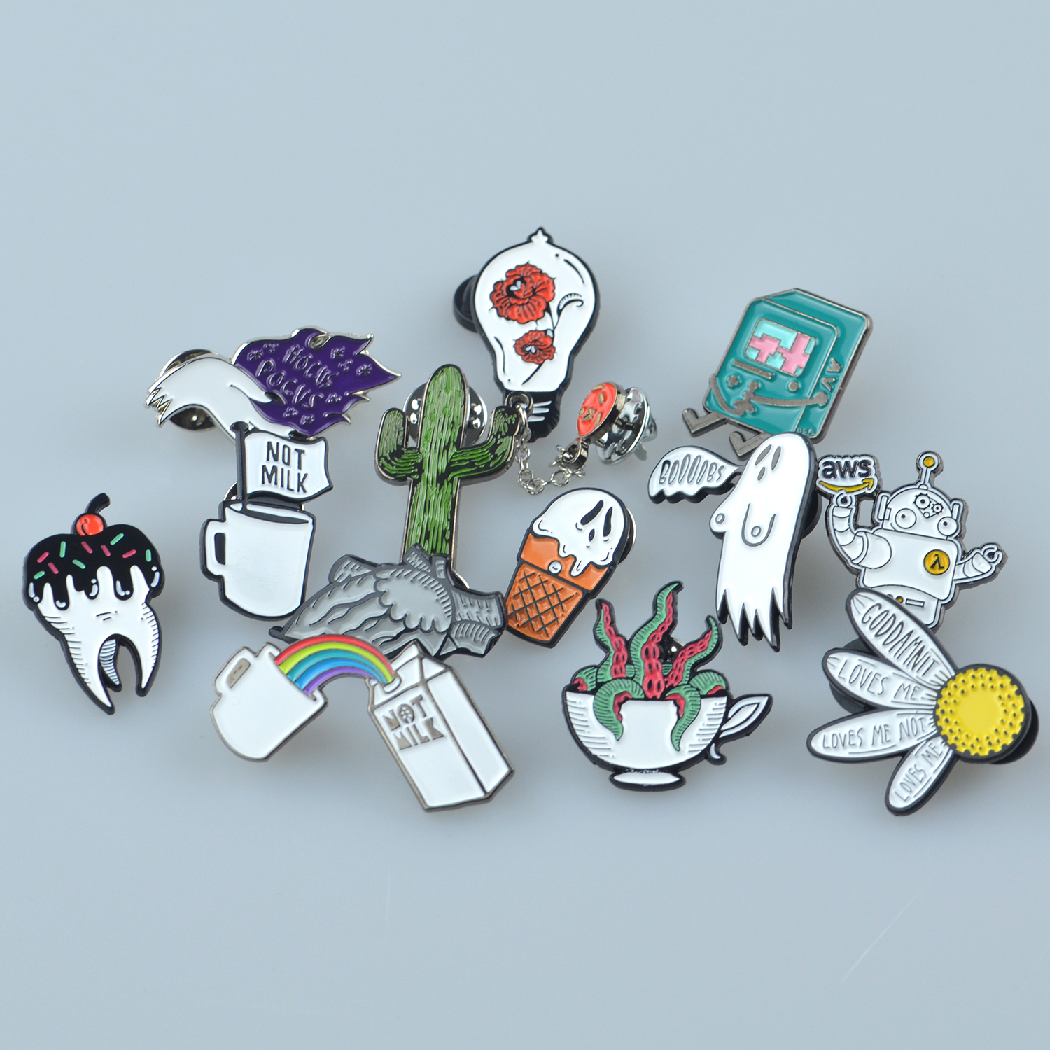 Fabricante de broches de metal esmaltado tingido por atacado, broches de lapela fofos colecionáveis ​​personalizados, broches pintados com caixa de presente